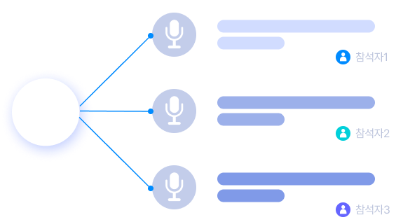 100인 이상의 대규모 회의에서도 정확한 발언자 식별이 가능합니다.